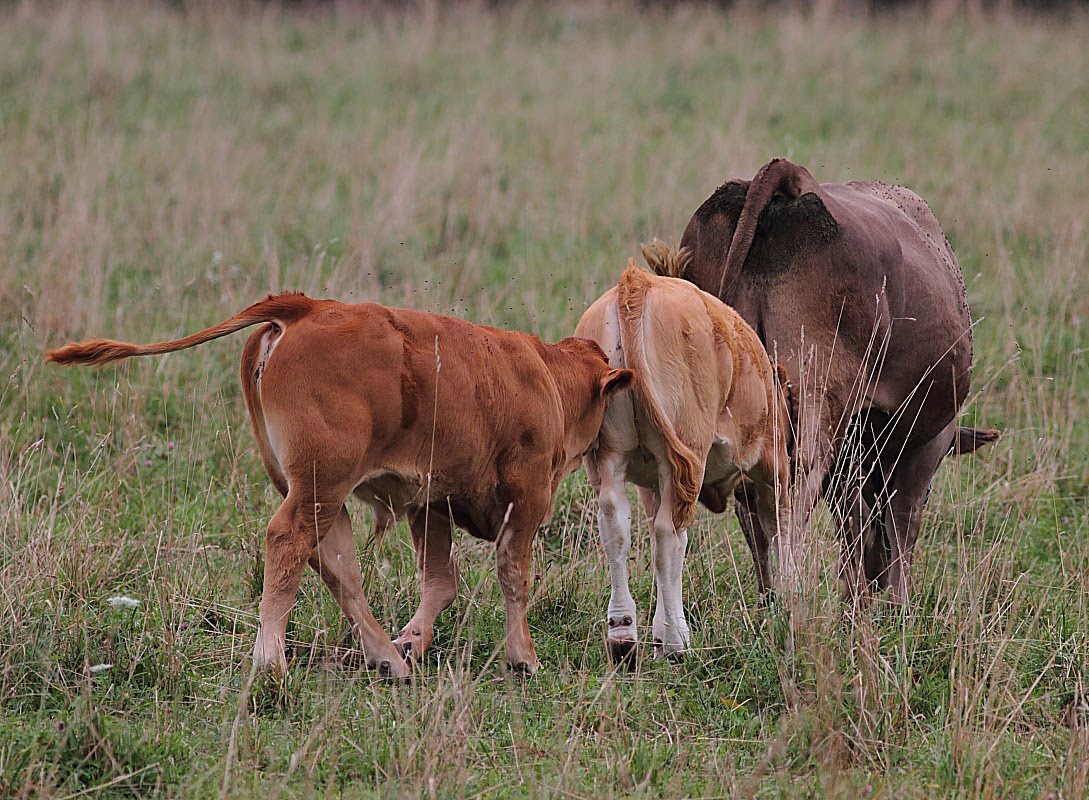 Jen and I travelled many miles over the 2 days and even stopped to watch the cow nursing the calfs. Nursing calfs Follow the leader This young bull was trying to mount everything including the baby cows.